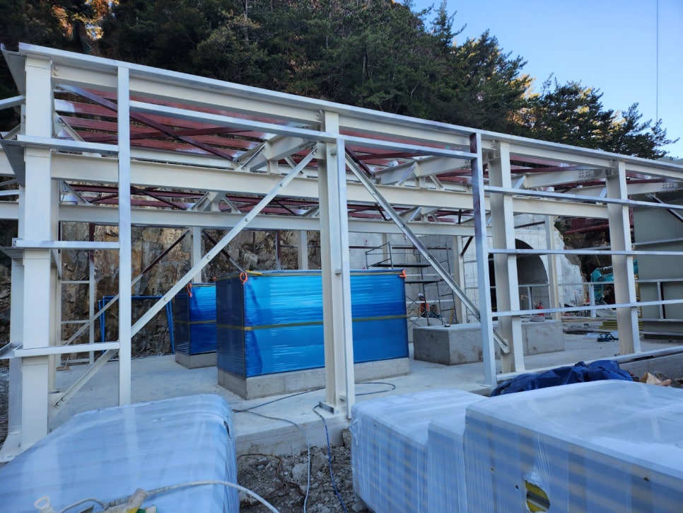 규모가 엄청나게 큰 뼈대는 아니었지만, 산업 시설인 만큼 안전이 최우선이기에 내화페인트 시공이 반드시 필요한 구조물이었습니다.