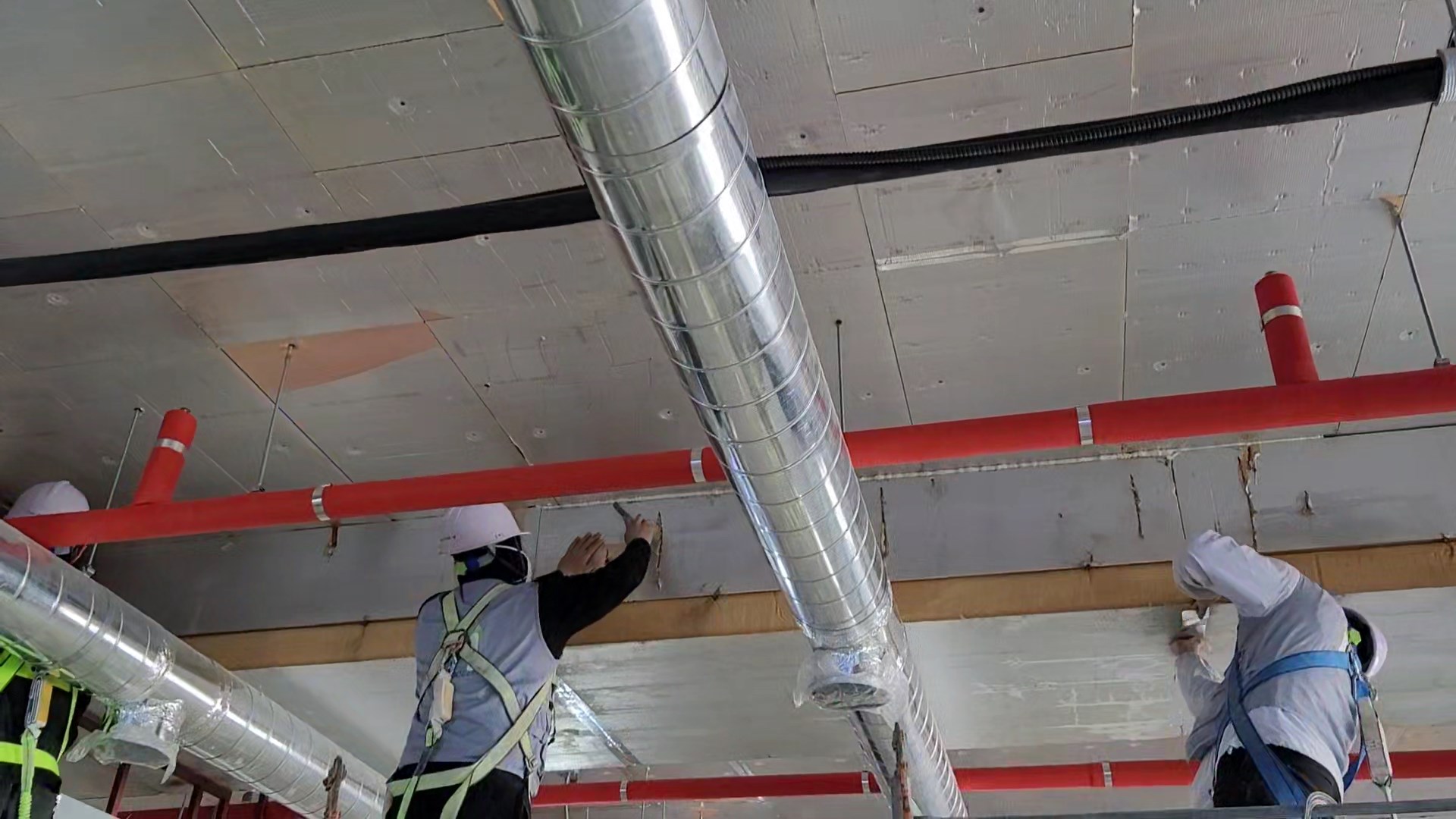 - 시공 내용 : 단열, 내화, 흡음 퍼라이트 뿜칠 및 전처리(보양, 테이핑, 퍼티 등 평활도작업)